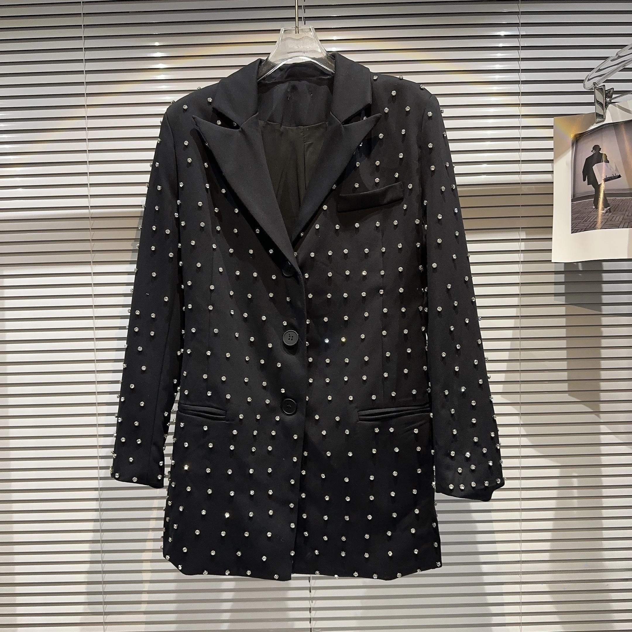 Женский Блестящий Блейзер средней длины, черный блейзер с подплечниками, модель Y2k на осень, 2023