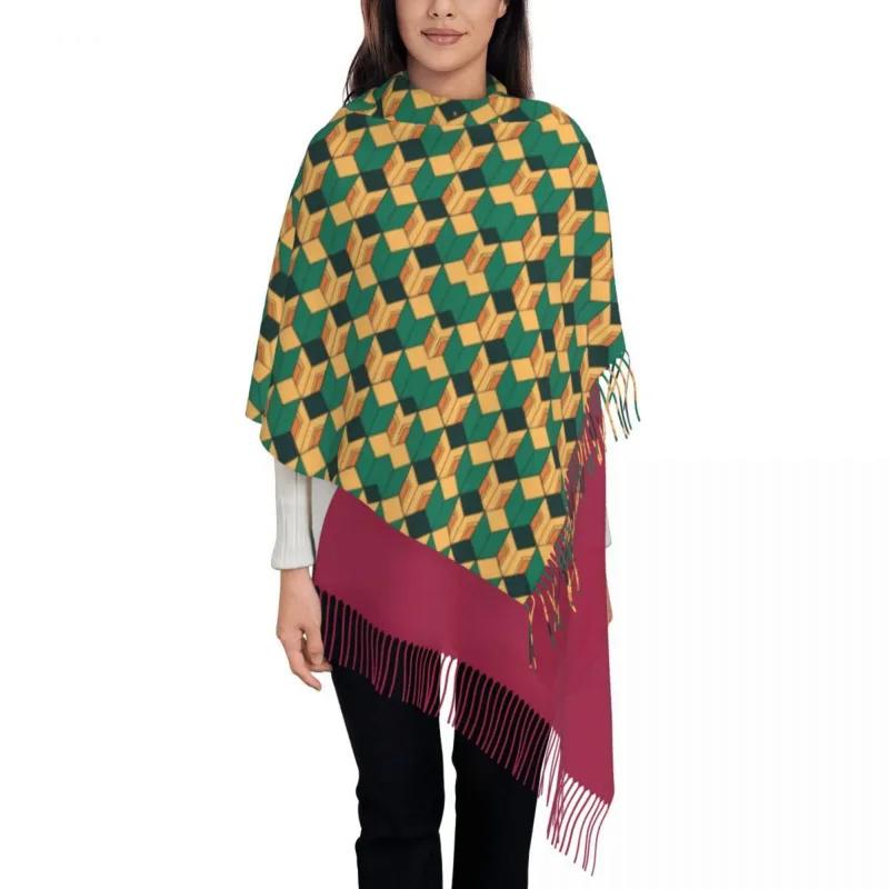 Женский Большой томиока с рисунком рассекающего демонов, Толстая теплая шаль с кисточками, аниме кимпачка, шарф No Yaiba
