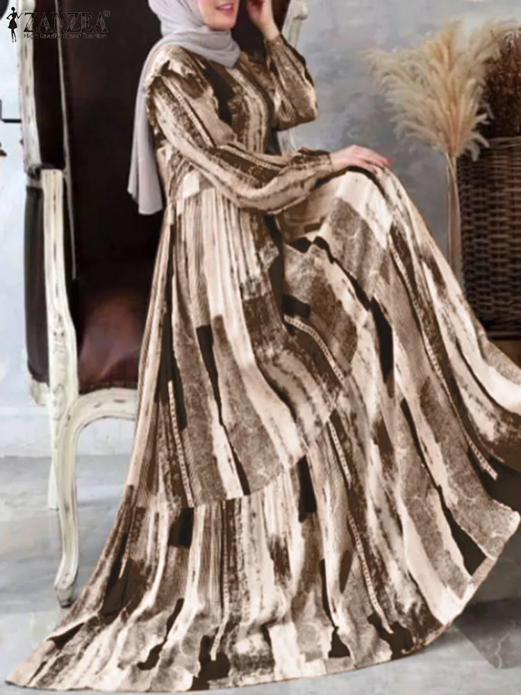 Платье ZANZEA женское с цветочным принтом, длинный сарафан в богемном стиле, мусульманская абайя, с длинным рукавом, элегантная модель, повседневная одежда