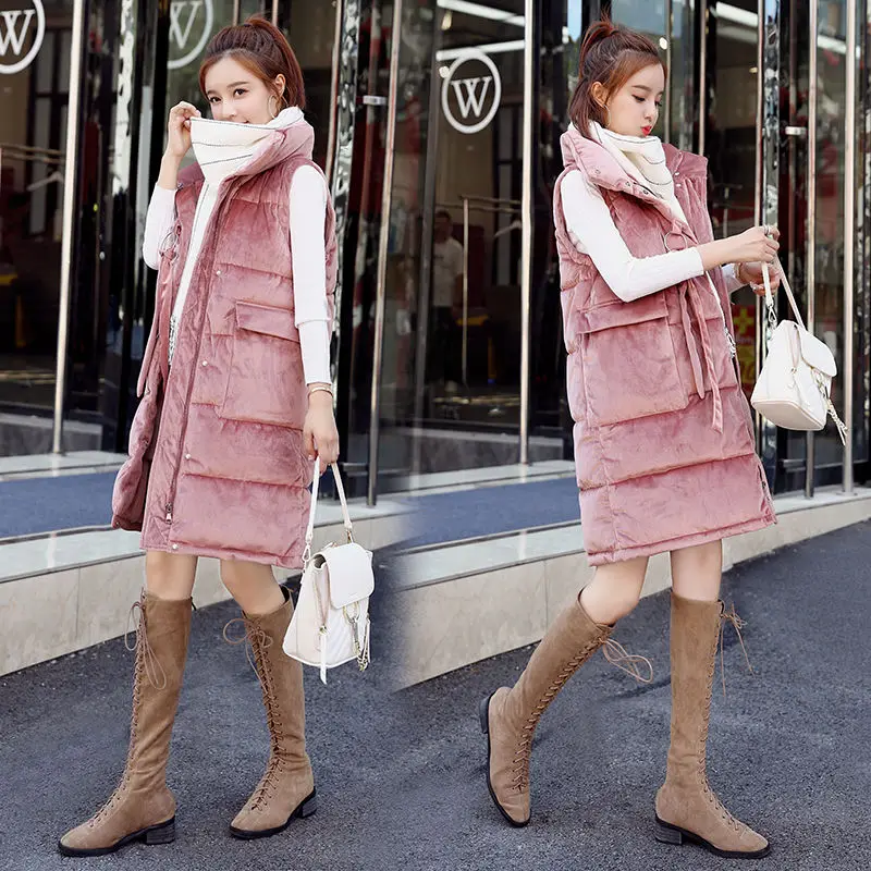 Женский Длинный жилет с воротником-стойкой, зимний бархатный жилет без рукавов, X62, 2022