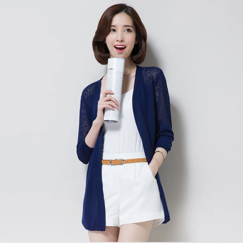 Женский Длинный льняной кардиган, элегантный однотонный тонкий трикотажный кардиган с полыми рукавами на лето и весну