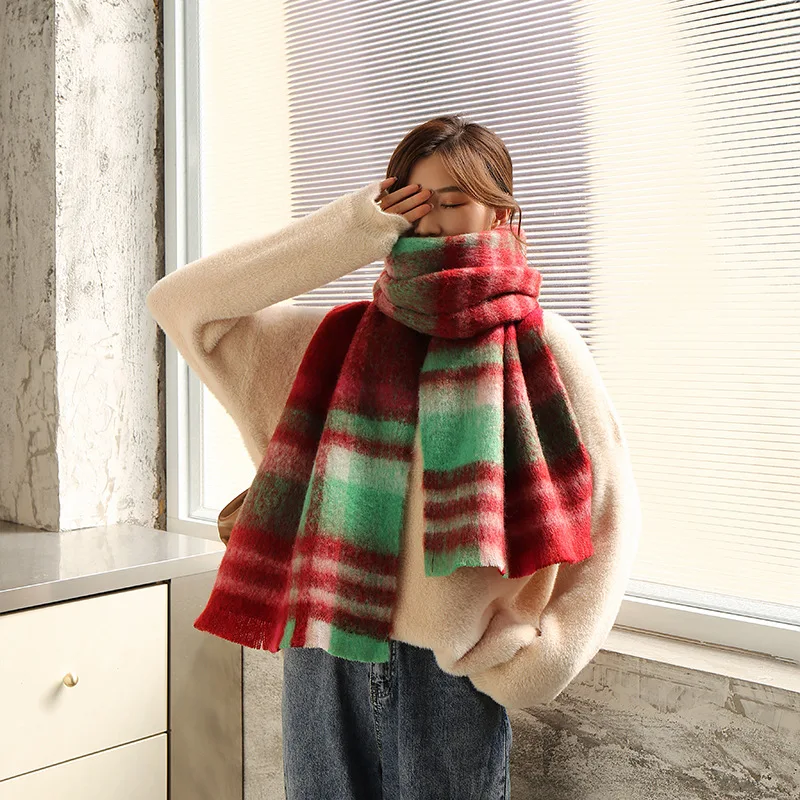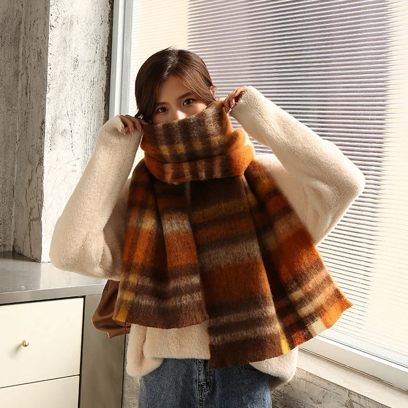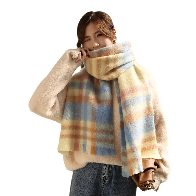 Женский Длинный шарф из кашемира, теплый плотный шарф ярких цветов, Корейская версия, зима 2023