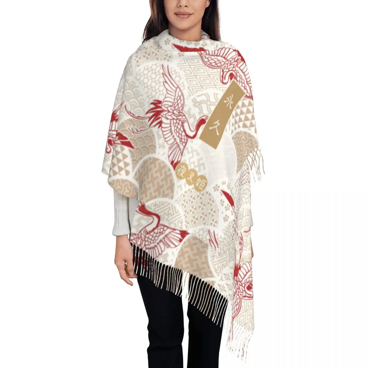 Женский Длинный шарф yashia Towa с рисунком в виде журавлей, Толстая теплая шаль с кисточками, шарф в японском стиле аниме Kagome Inuyasha