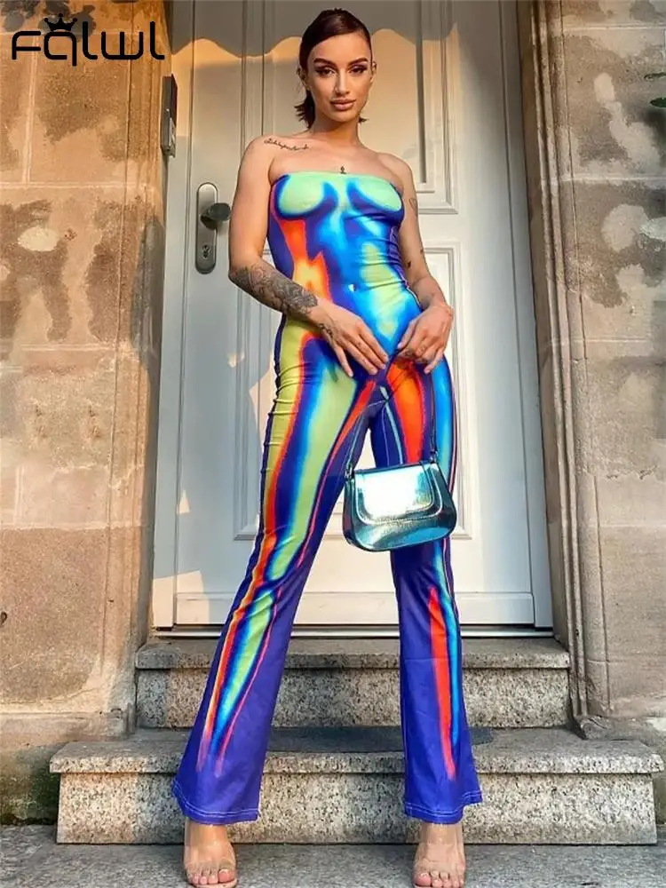Женский Облегающий комбинезон без рукавов с графическим принтом и открытой спиной
