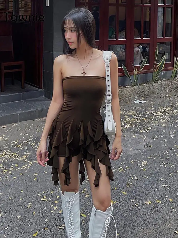 Женский Облегающий комбинезон с оборками Tawnie, элегантный повседневный комбинезон в стиле ретро, модель Y2K на лето, 2023