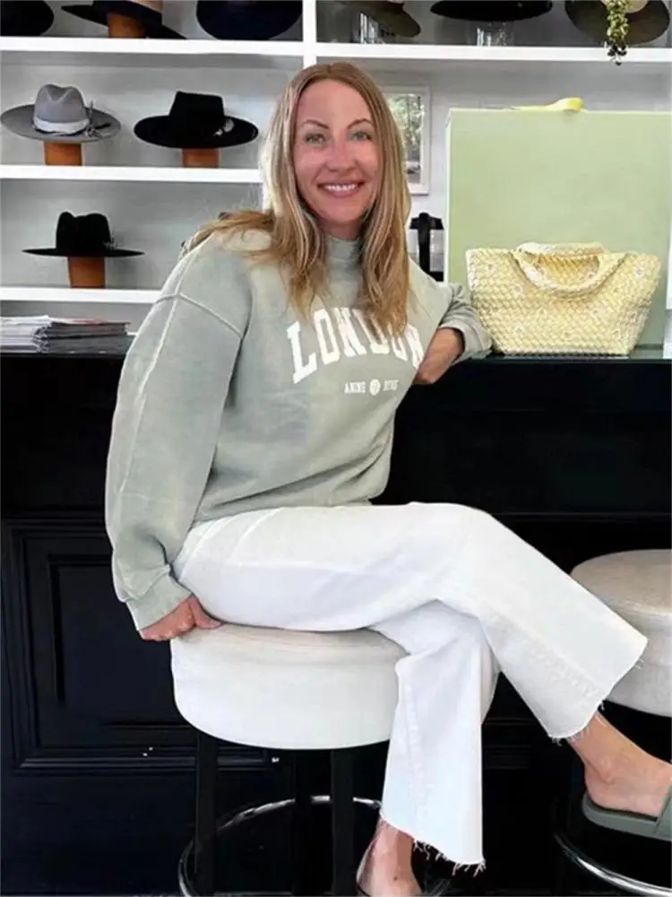 Женский Однотонный пуловер из 2023 хлопка, с длинным рукавом и круглым вырезом