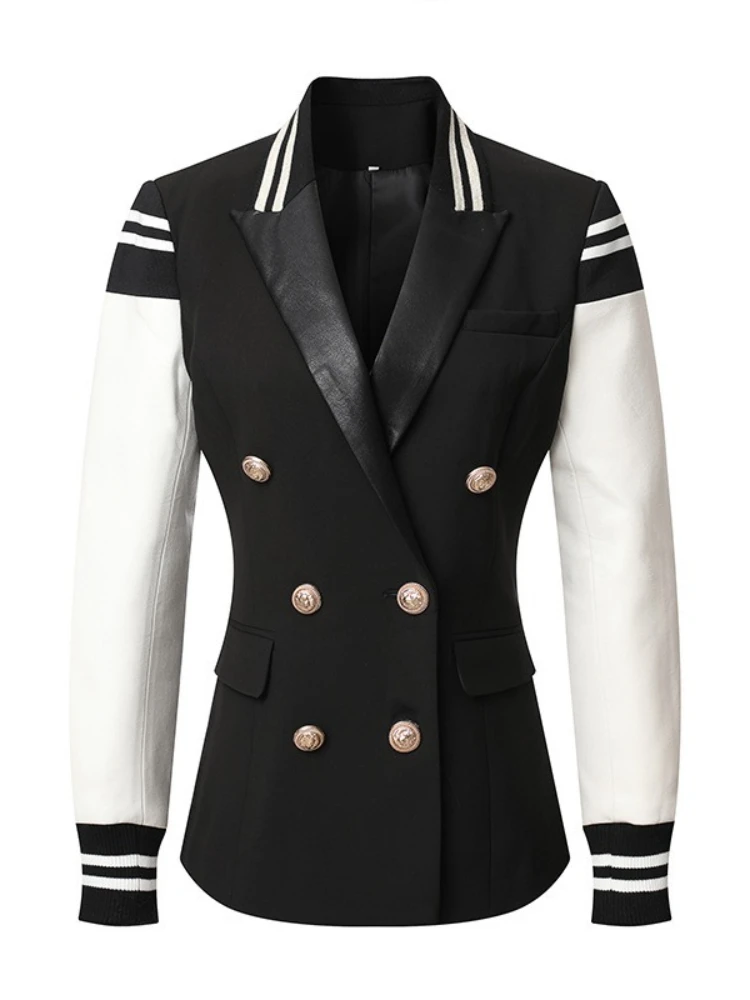 Женский Повседневный Кожаный двубортный блейзер в стиле пэчворк, классический Женский блейзер с длинным рукавом