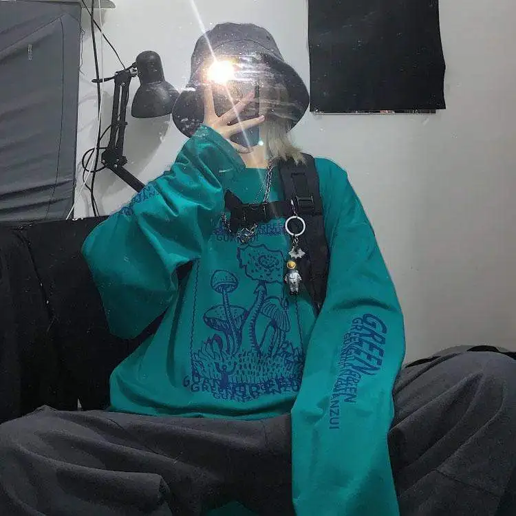Женский Повседневный Свободный свитшот, пуловер с длинным рукавом и круглым вырезом, с принтом в виде грибов и букв для взрослых