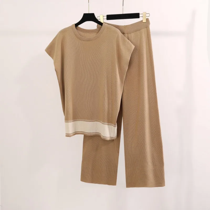 Женский Повседневный Трикотажный костюм, корейский модный костюм из 2 предметов, топ с рукавом «летучая мышь» и брюки с широкими штанинами, лето