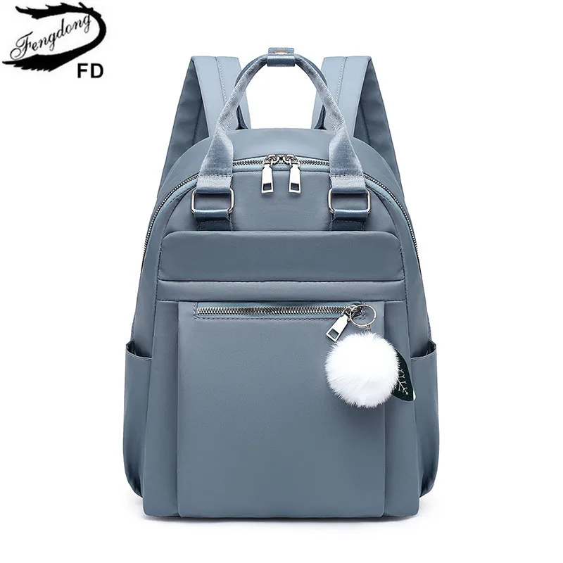 Женский Повседневный водонепроницаемый рюкзак Fengdong, черный или синий водонепроницаемый Легкий Повседневный дорожный рюкзак с плюшевыми мячиками, осень