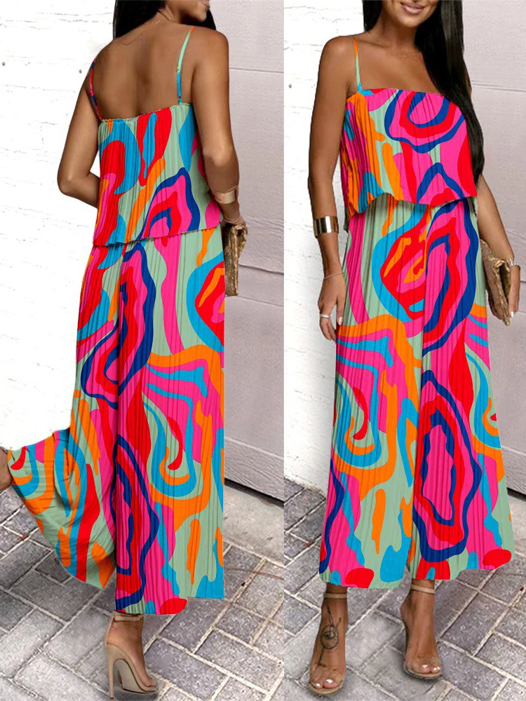 Женский Повседневный комбинезон на тонких бретельках, с оборками на подоле