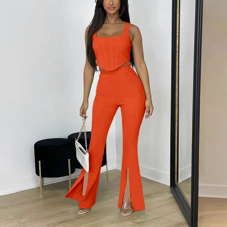 Женский Повседневный комплект Hirigin, летний комплект из двух предметов, однотонный топ без рукавов с асимметричным подолом и расклешенные брюки с высокой талией и разрезом