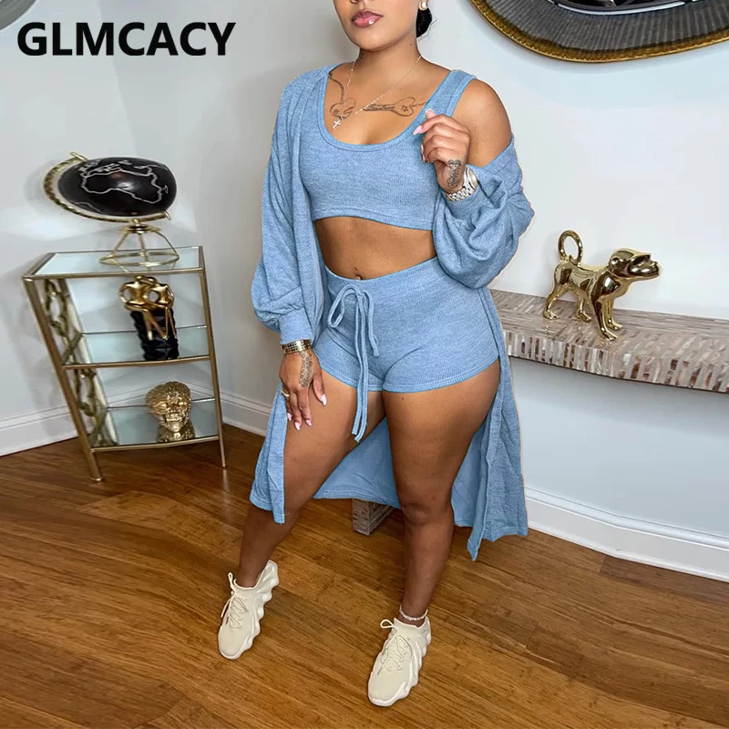 Женский Повседневный однотонный комплект, короткий топ без рукавов и кардиган, костюмы