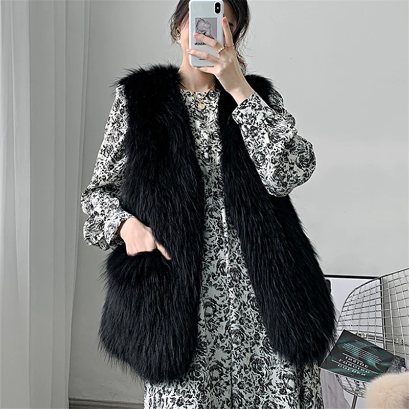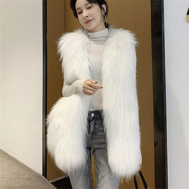 Женский Теплый кардиган средней длины, осенне-зимний Кардиган с имитацией лисьего меха