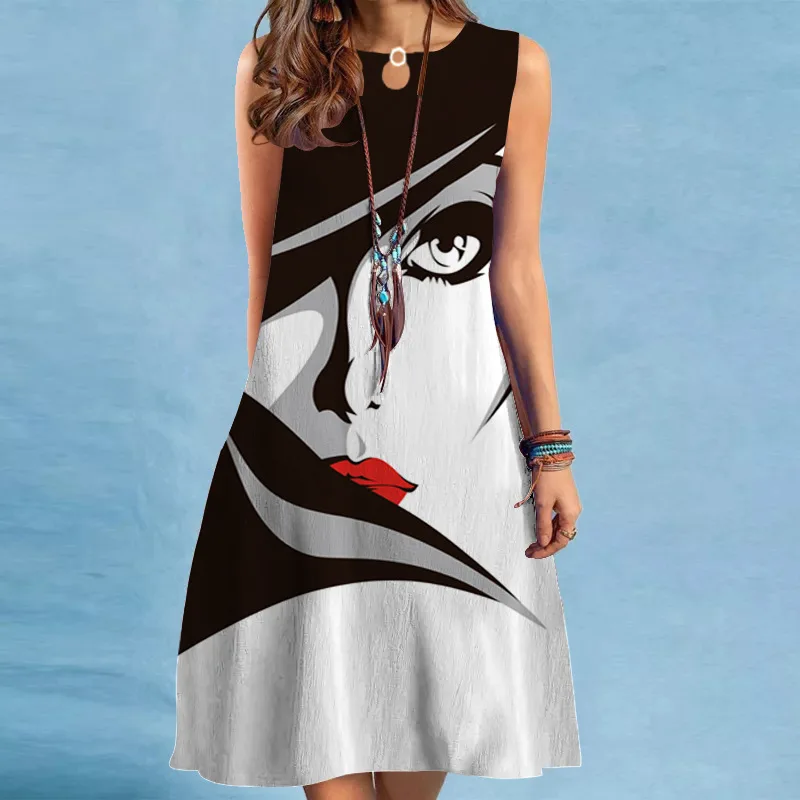 Женский ажурный сарафан с круглым вырезом, элегантное платье макси без рукавов до колен с винтажным принтом, лето