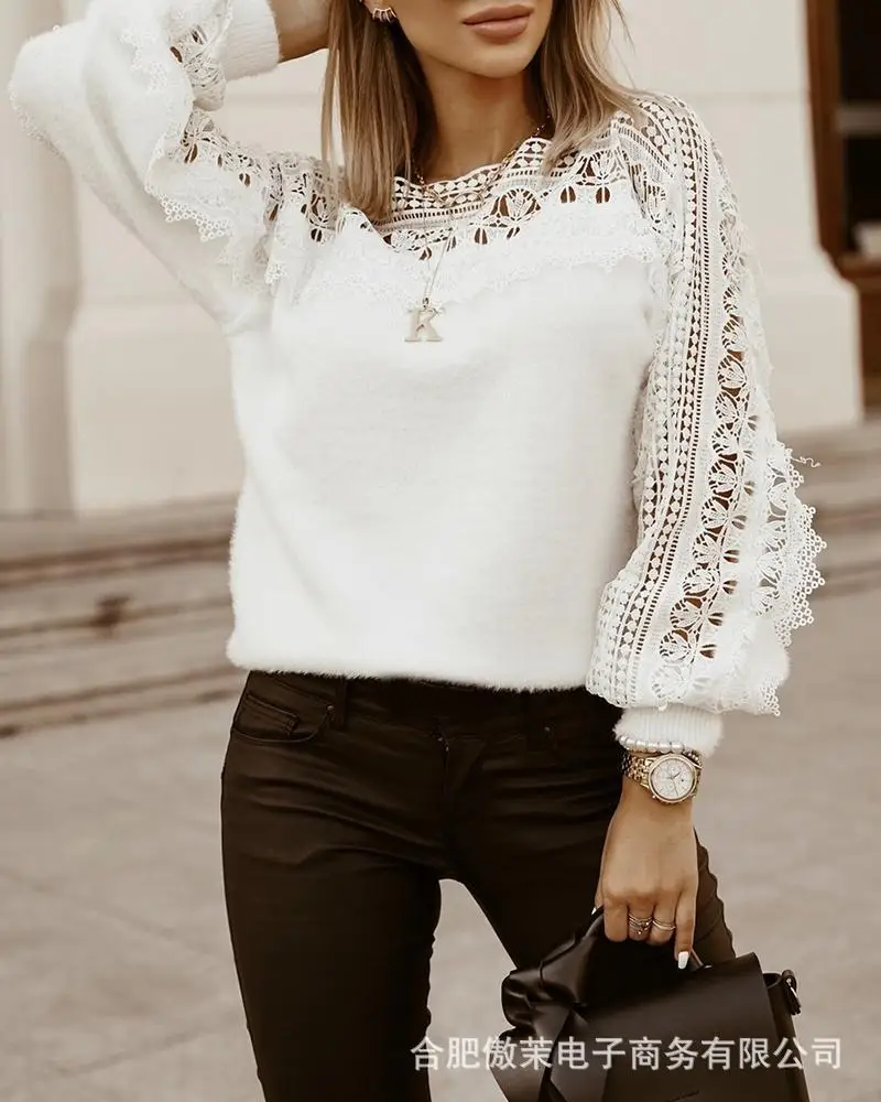 Женский ажурный свитер в европейском и американском стиле с рукавами-фонариками