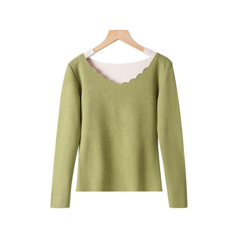 Женский бесшовный двусторонний бархатный теплый костюм для осени и зимы: Рубашка с длинными рукавами top, XXXL зелёный