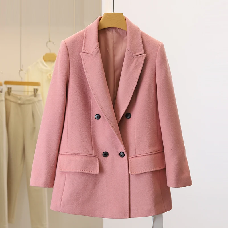 Женский блейзер, костюм, куртка, розовое шерстяное пальто, свободный Блейзер, куртки