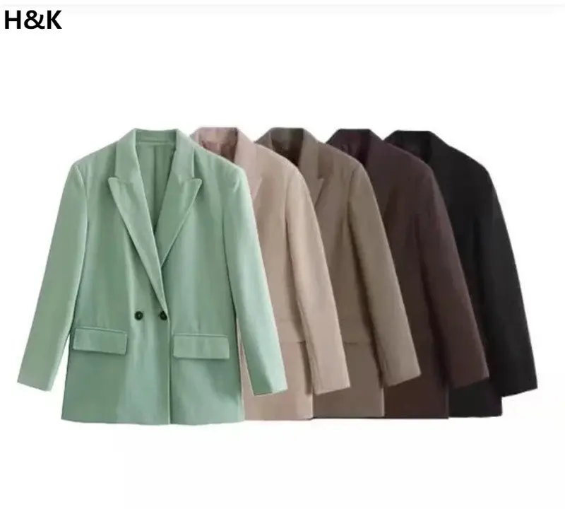 Женский блейзер, новинка весны 2022, воротник-поло, свободный двубортный костюм разных цветов, куртка для женщин, женский костюм