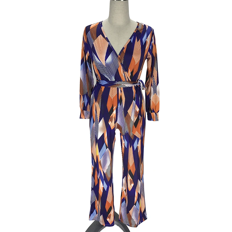Женский богемный комбинезон с принтом, комбинезон с V-образным вырезом и широкими штанинами на шнуровке, 2022