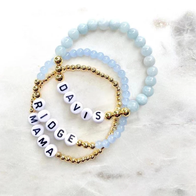 Женский браслет из бусин золотого цвета с натуральным камнем, индивидуальные подарки с именем для друзей, модные эластичные Парные изделия