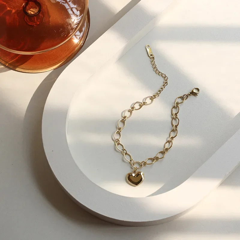 Женский браслет из нержавеющей стали с подвеской в виде сердца