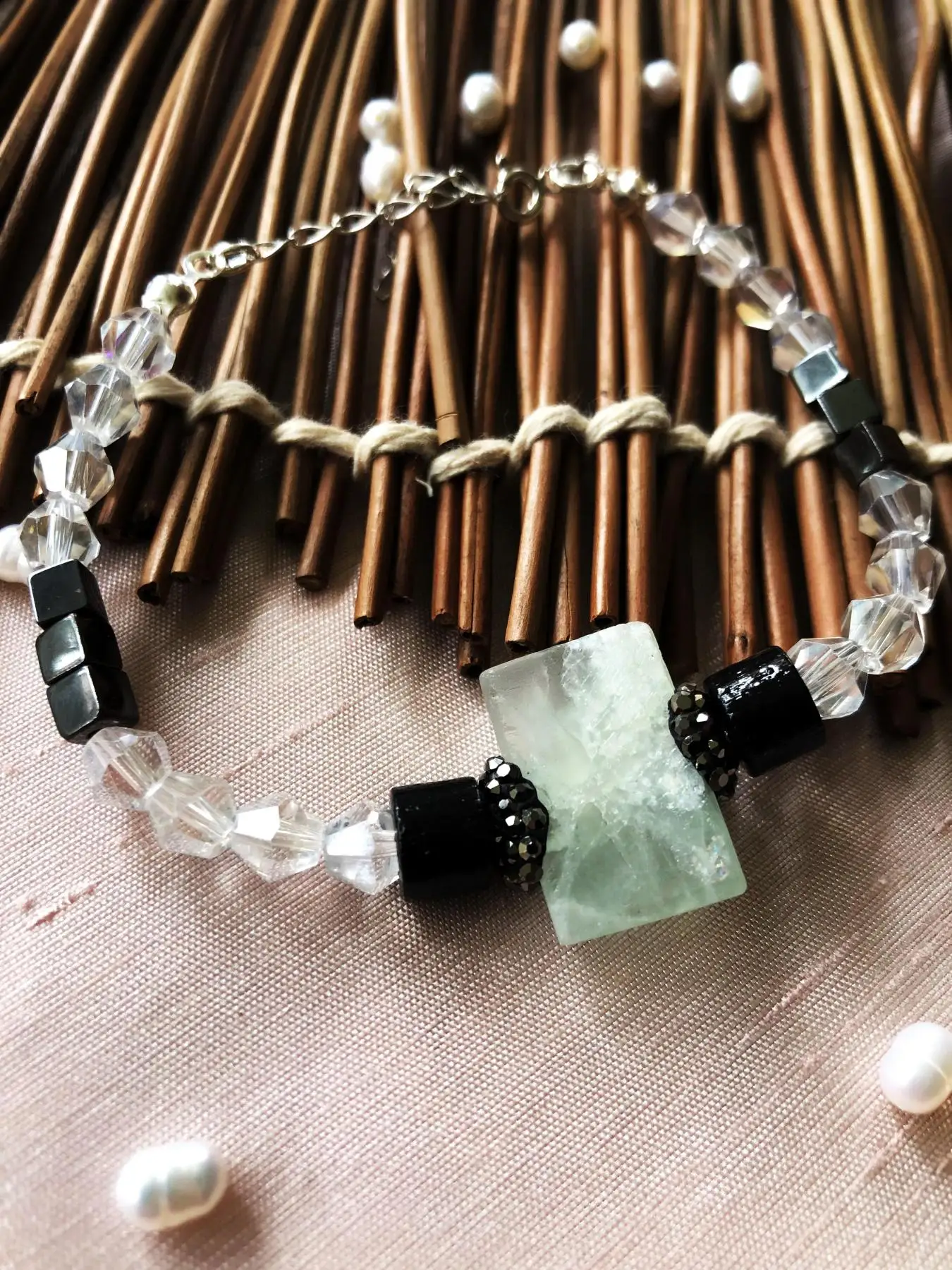 Женский браслет ручной работы из серебра 925 пробы с кристаллами и гематита