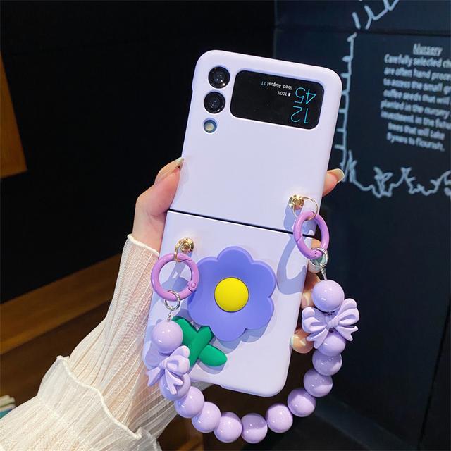 Женский браслет с милыми цветочными бусинами и бантом для девочек, жесткий чехол для Samsung Galaxy Z Flip 4 3, чехол через плечо, ремешок For Galaxy Z Flip 3