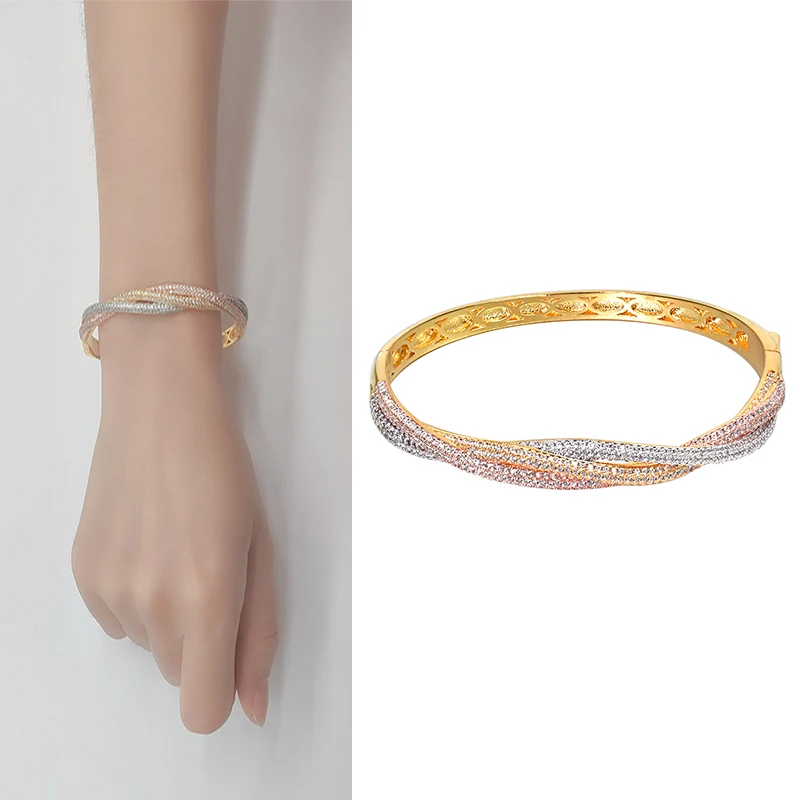 Женский браслет, трехцветный Круглый браслет с крестом, женское позолоченное Африканское ювелирное изделие, твердый Роскошный дизайнерский браслет из Дубая