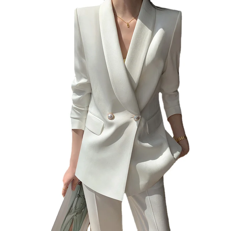 Женский брючный костюм из двух предметов, элегантный белый Повседневный пиджак и брюки, офисная одежда для менеджера, весна 2023