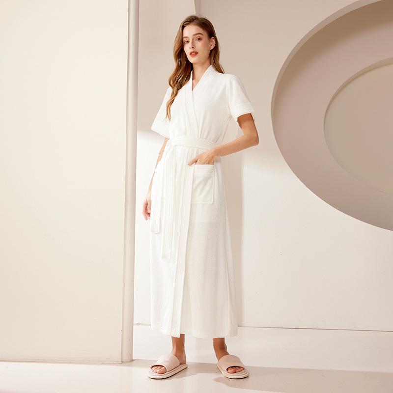 Женский весенне-летний длинный мягкий махровый халат для пар с короткими рукавами и карманами, пижамы со шнуровкой и V-образным вырезом M белый