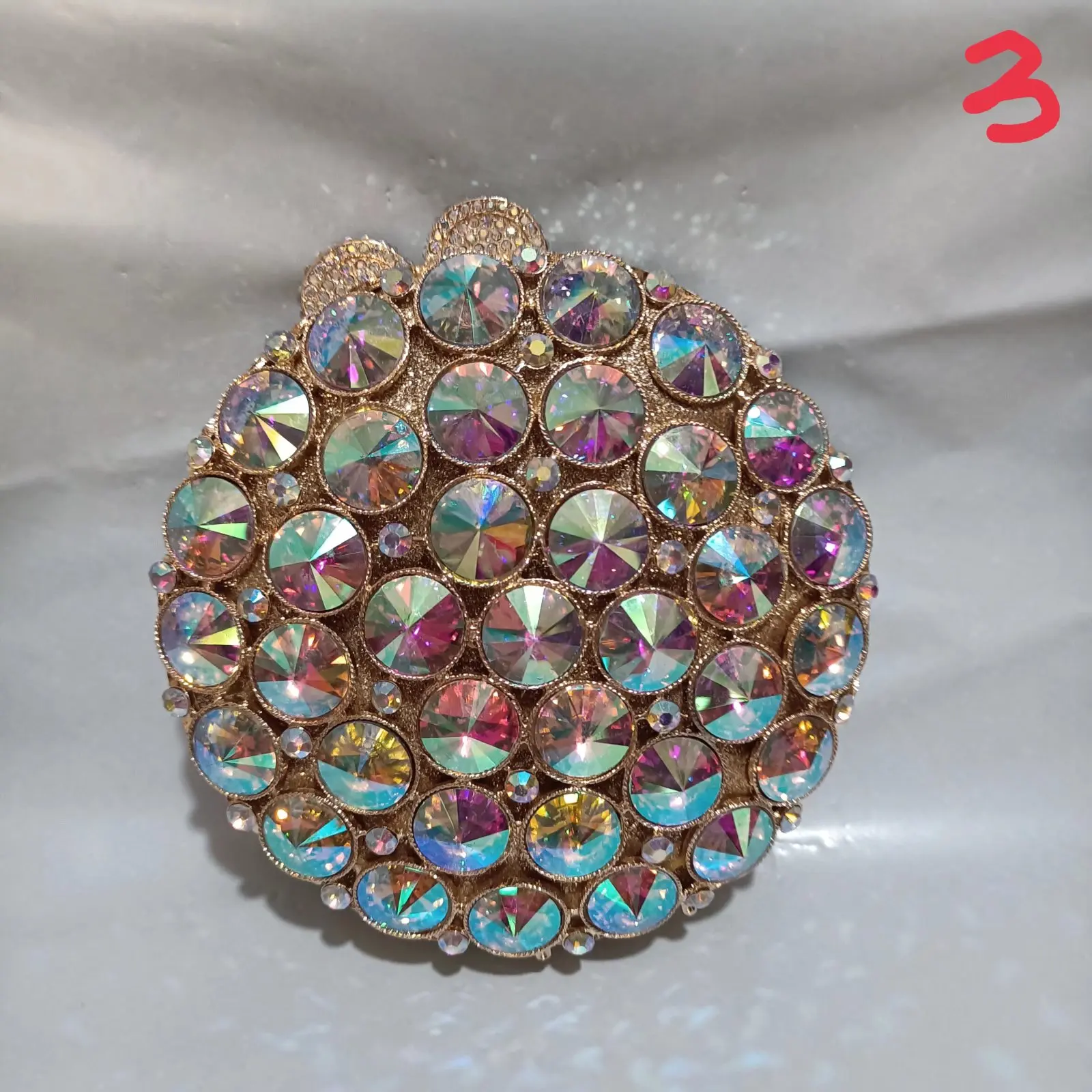 Женский вечерний кошелек круглой формы с золотистыми камнями