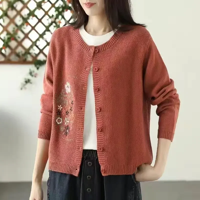 Женский винтажный кардиган с вышивкой, Свободный Повседневный Универсальный вязаный свитер на пуговицах, верхняя одежда, U33, Осень-зима