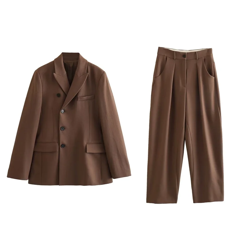 Женский винтажный коричневый Асимметричный прямой комбинезон, весенний женский однотонный костюм-шаровары, женские комплекты из блейзера в стиле High Street, 2023