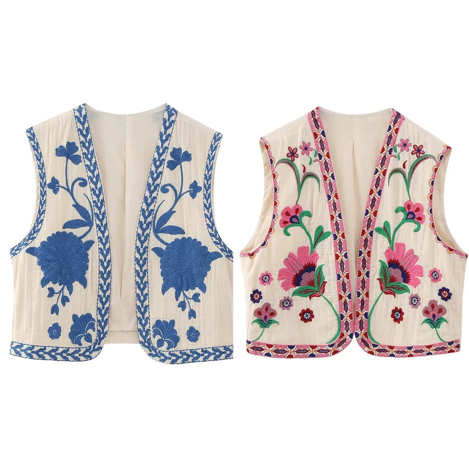 Женский винтажный открытый жилет с цветочной вышивкой, Женский Национальный жилет, куртка, наряды, повседневный укороченный топ для отпуска, блузка Y2k