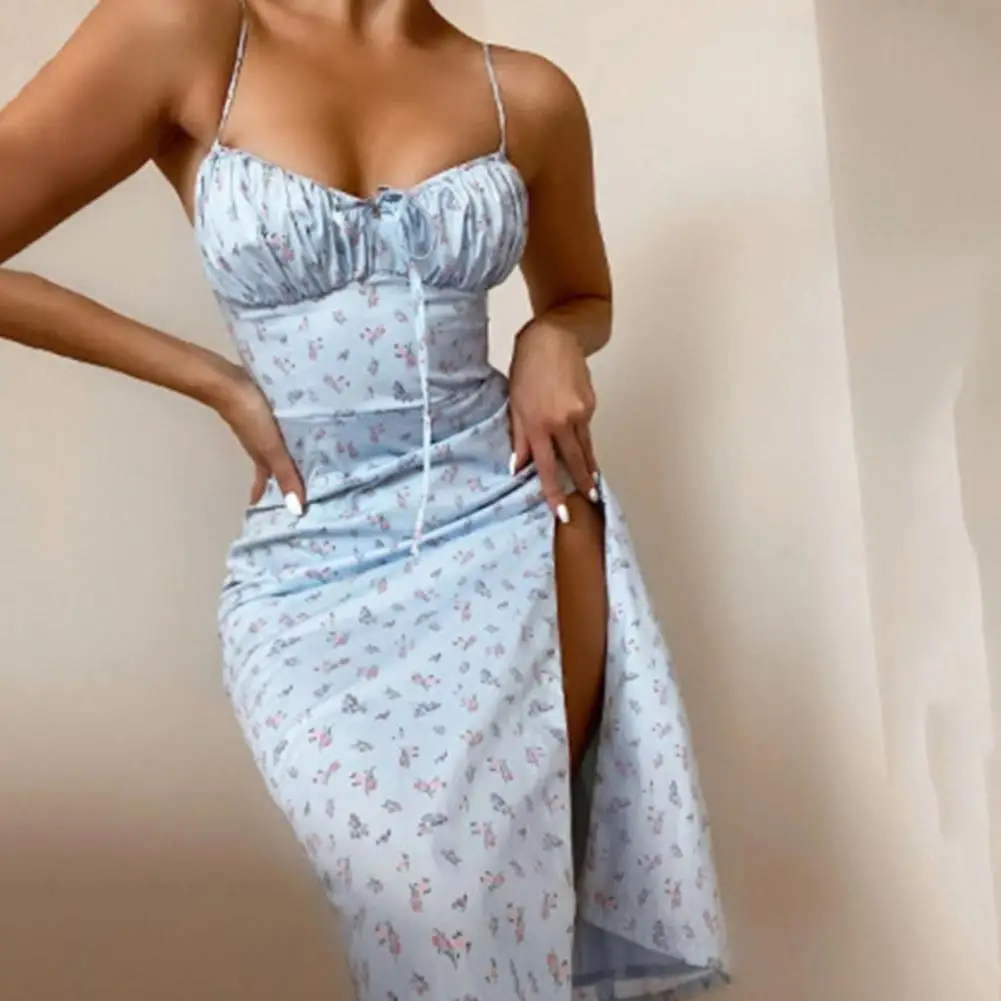 Женский винтажный сарафан на бретельках, с открытой спиной и разрезом