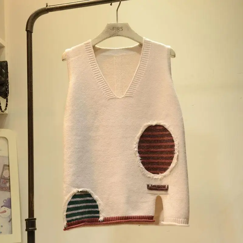 Женский винтажный трикотажный свитер, повседневный свободный джемпер в полоску, с принтом, H85