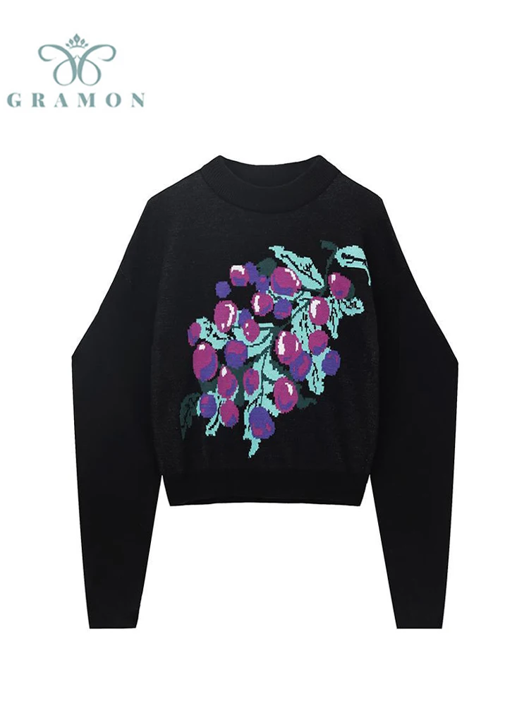 Женский винтажный трикотажный свитер с длинным рукавом и круглым вырезом