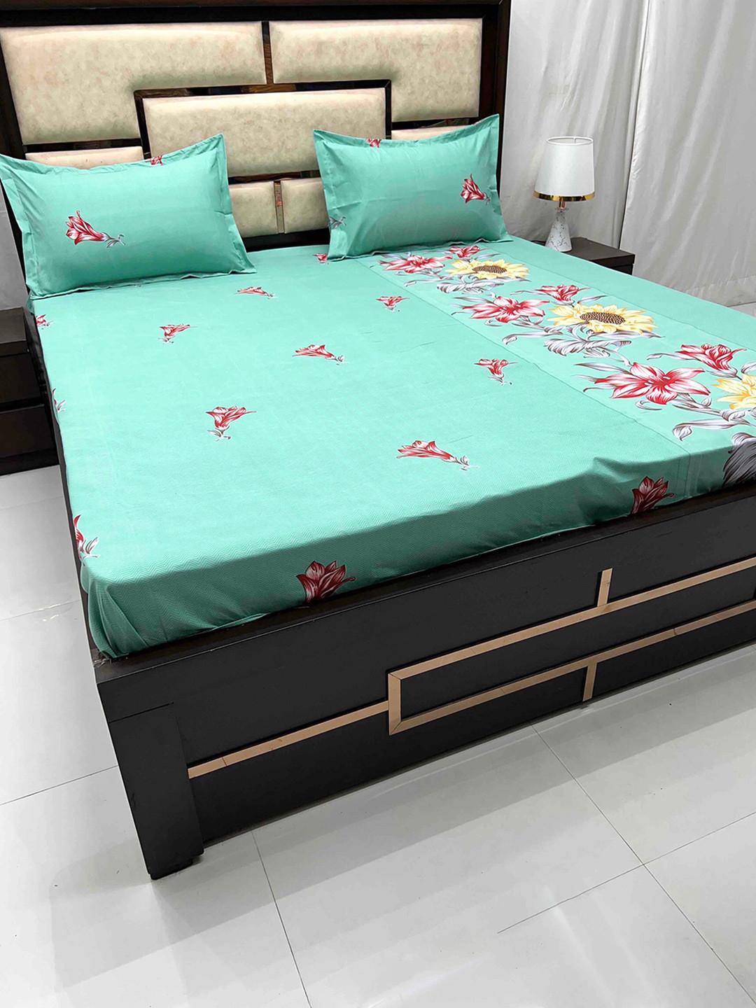 Pure Decor Leisure fur Green Floral PolyCotton 230 TC King Bedsheet & 2 Pillow Covers
