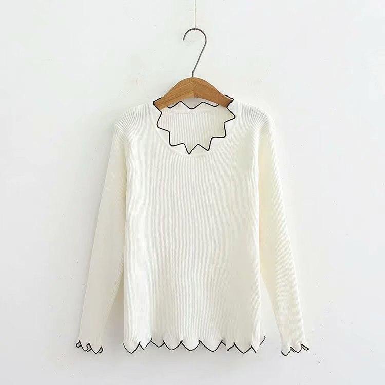 Женский вязаный свитер в полоску с волнистыми краями, свободный эластичный свитер большого размера с длинными рукавами, пуловер, женский весенне-осенний One Size белый
