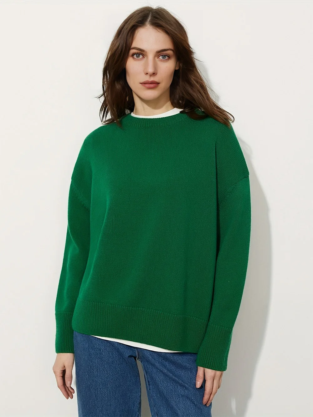 Женский вязаный свитер с круглым вырезом, свободного покроя