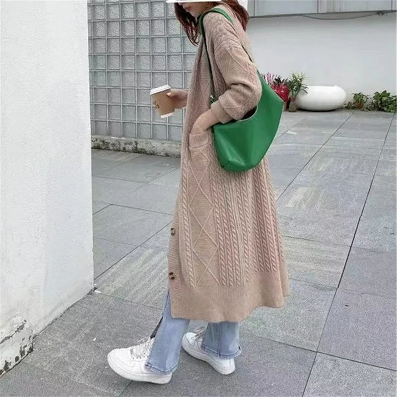 Женский вязаный свитер AW22, Свободная Повседневная Длинная Куртка оверсайз с V-образным вырезом, одежда для ленивых, 2022