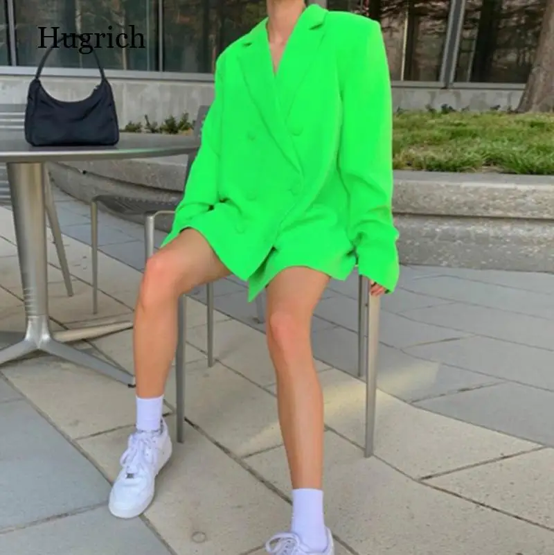 Женский двубортный Блейзер, повседневное Свободное пальто большого размера с длинным рукавом, весна-осень 2021