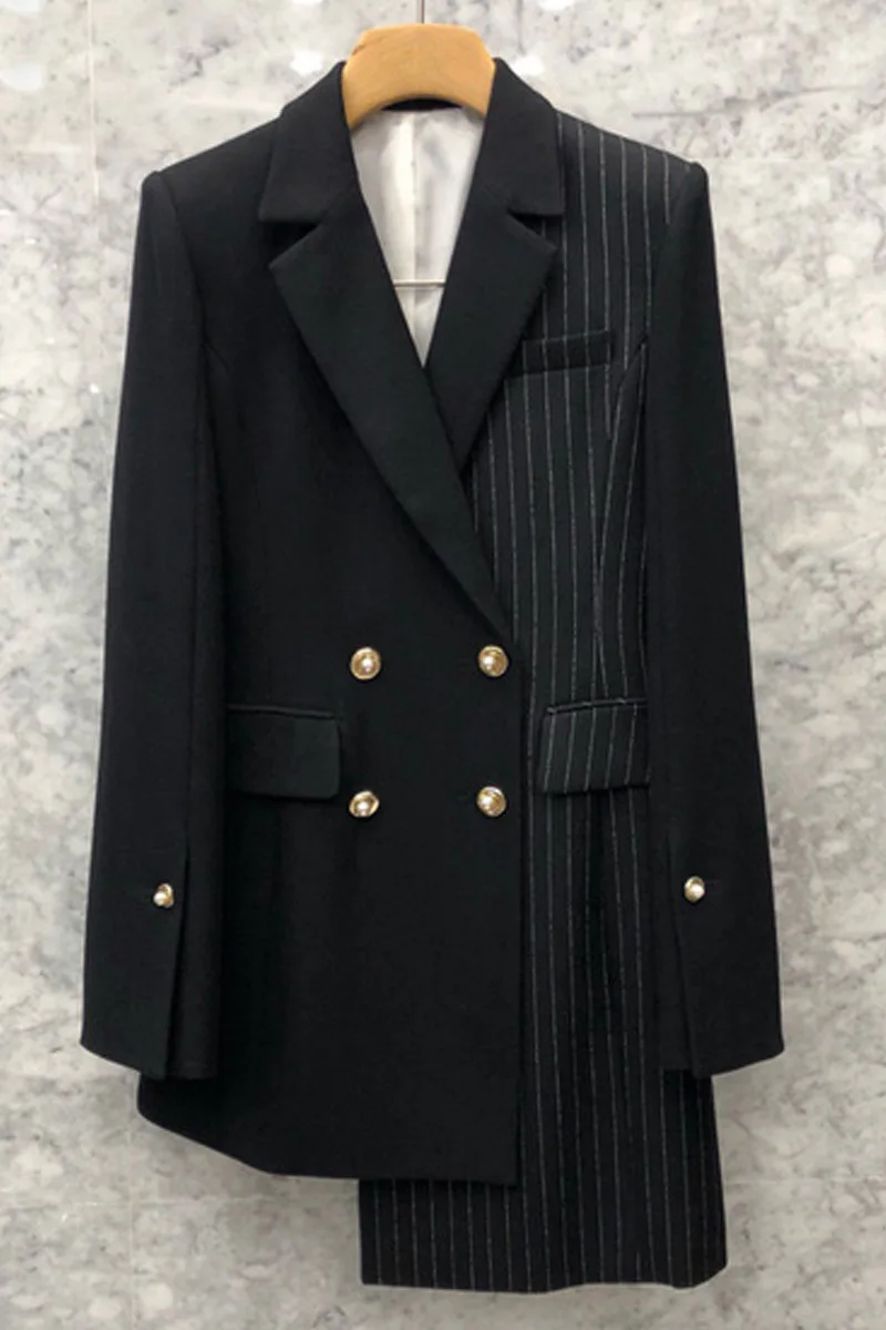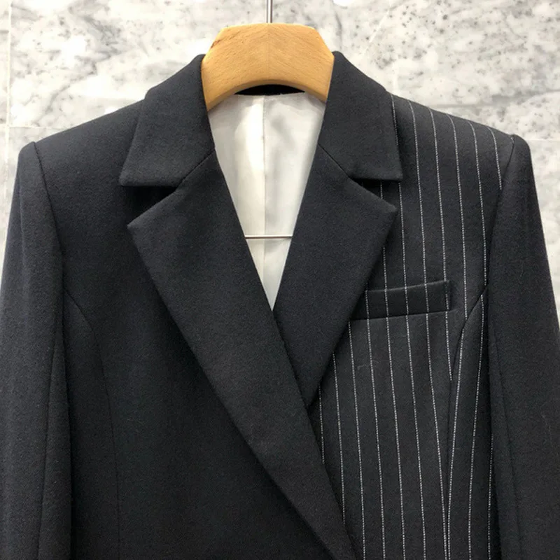 Женский двубортный блейзер в полоску, Черный Асимметричный Длинный блейзер в Корейском стиле, весна-осень 2020, A105