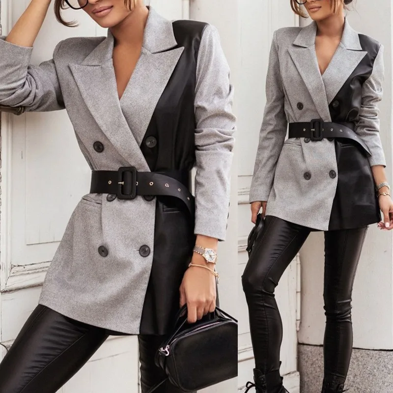 Женский двубортный блейзер в стиле пэчворк, демисезонный Блейзер со шнуровкой, 2024