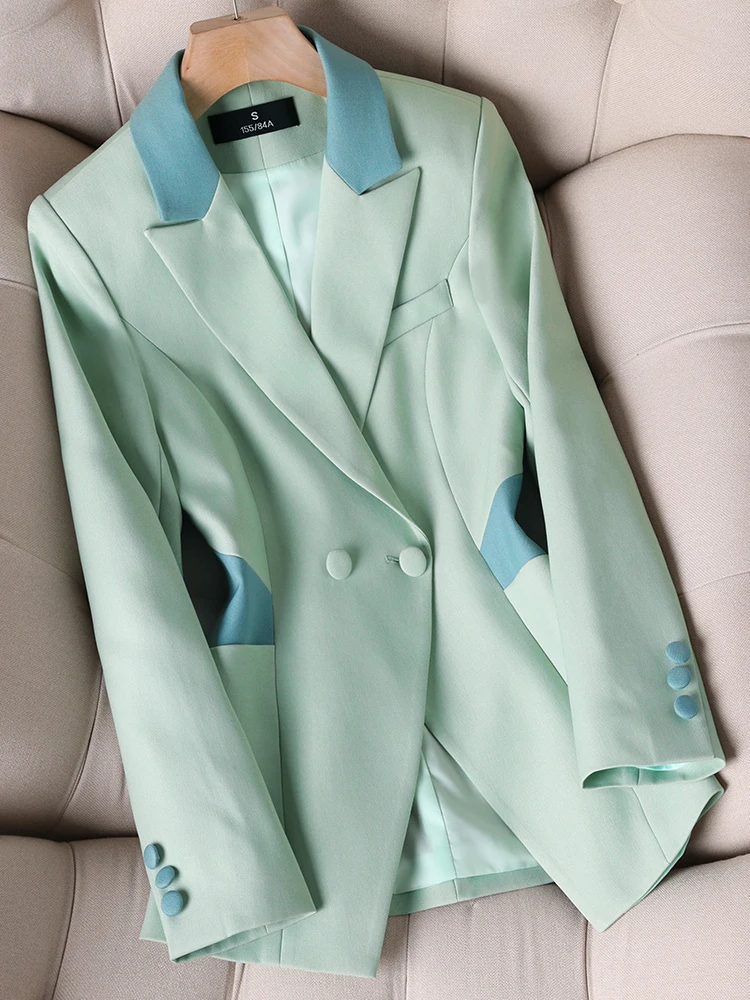 Женский двубортный блейзер с отложным воротником и длинным рукавом