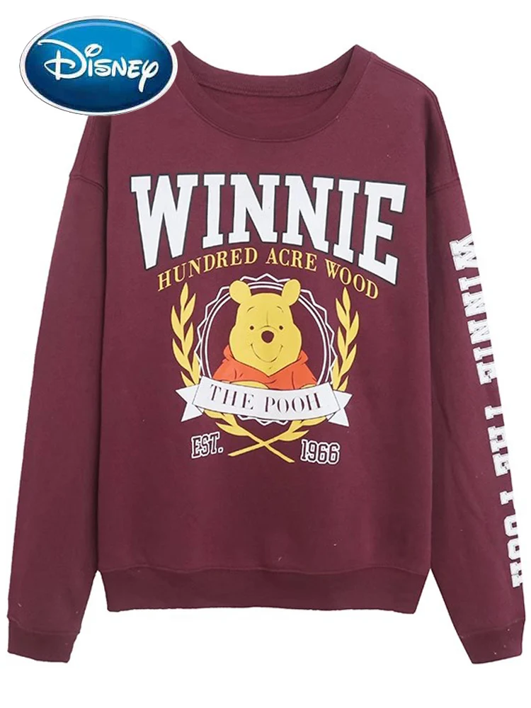 Женский джемпер с принтом «Винни-Пух», флисовый пуловер с длинным рукавом и круглым вырезом