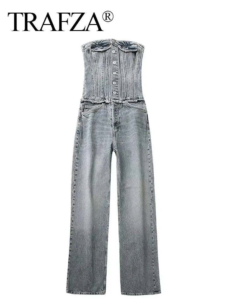 Женский джинсовый комбинезон с пуговицами и открытой спиной, в винтажном стиле