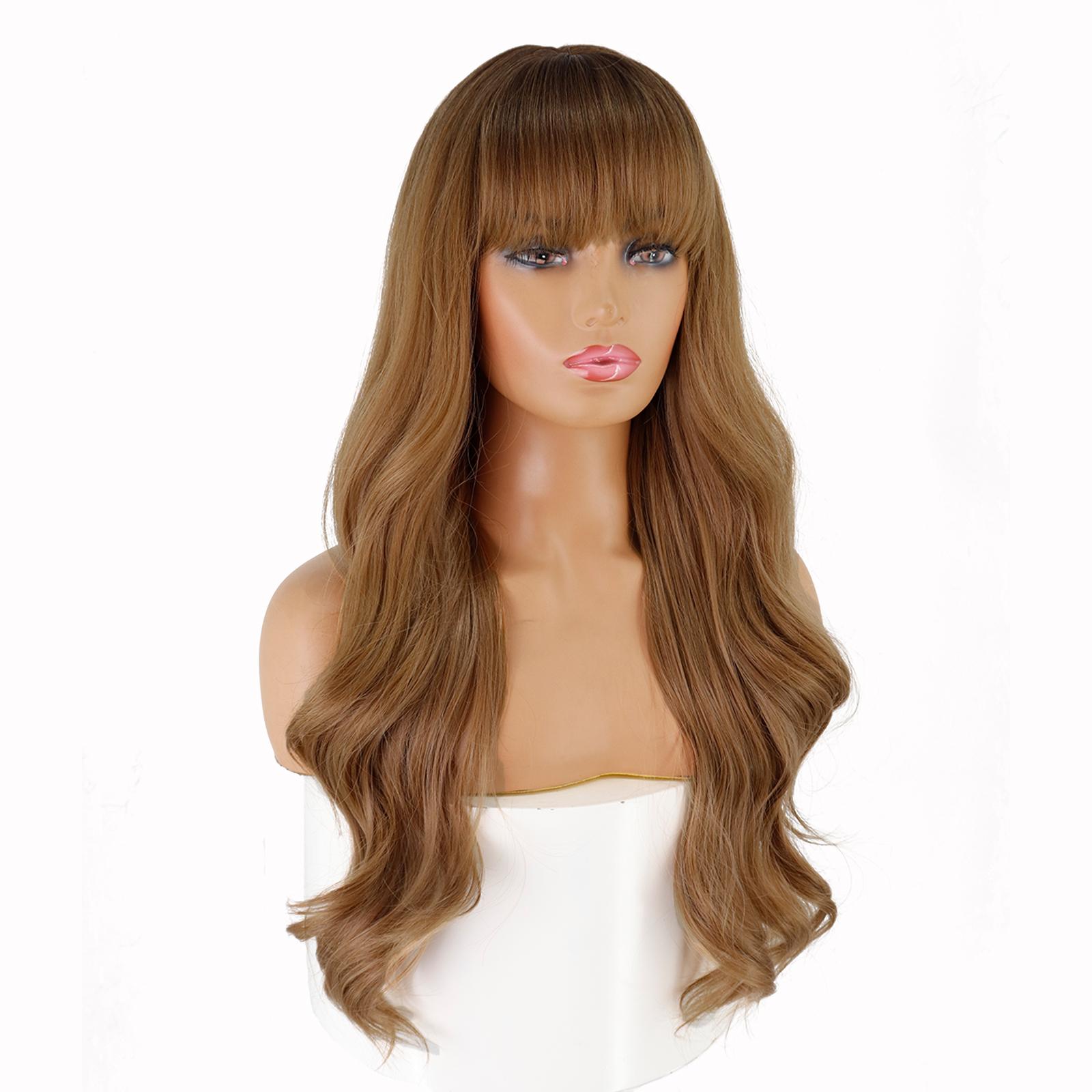Женский длинный волнистый парик MERISIHAIR с челкой, 24 дюйма, длинный парик из синтетического волокна, черный, коричневый, парик для косплея/повседневных/вечеринок