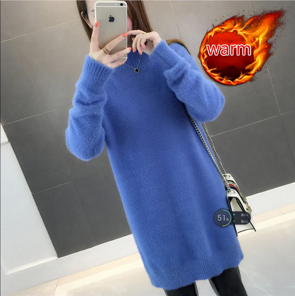Женский длинный кашемировый свитер из искусственной норки, вязаный теплый флисовый пуловер с длинным рукавом